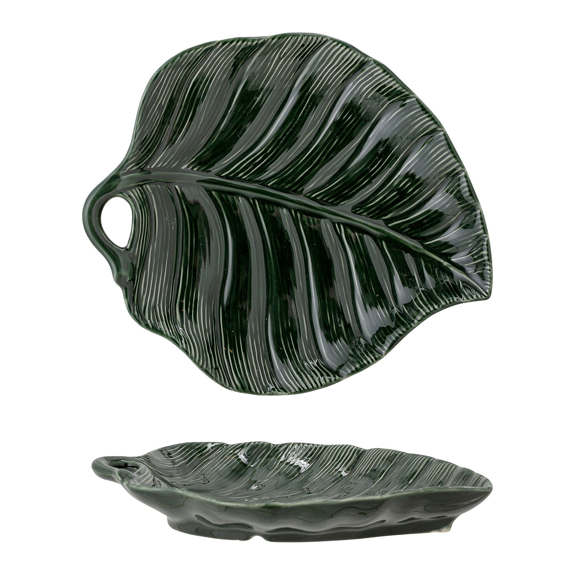Den unika Savanna-tallriken från Bloomingville förvandlar din dukning med sin trädgårdsinspirerade design. Med sin originella bladform i mörkgrönt stengods kommer dina maträtter att få extra uppmärksamhet. Denna tallrik är ett perfekt tillskott till ditt kök om du söker efter något som både tillför en fräsch känsla och har ett stilfullt utseende.